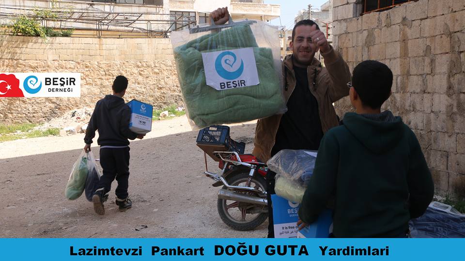 توزيع سلل غذائية على أهلنا المهجرين من الغوطة الشرقية مقدمة من جمعية بشير التركية