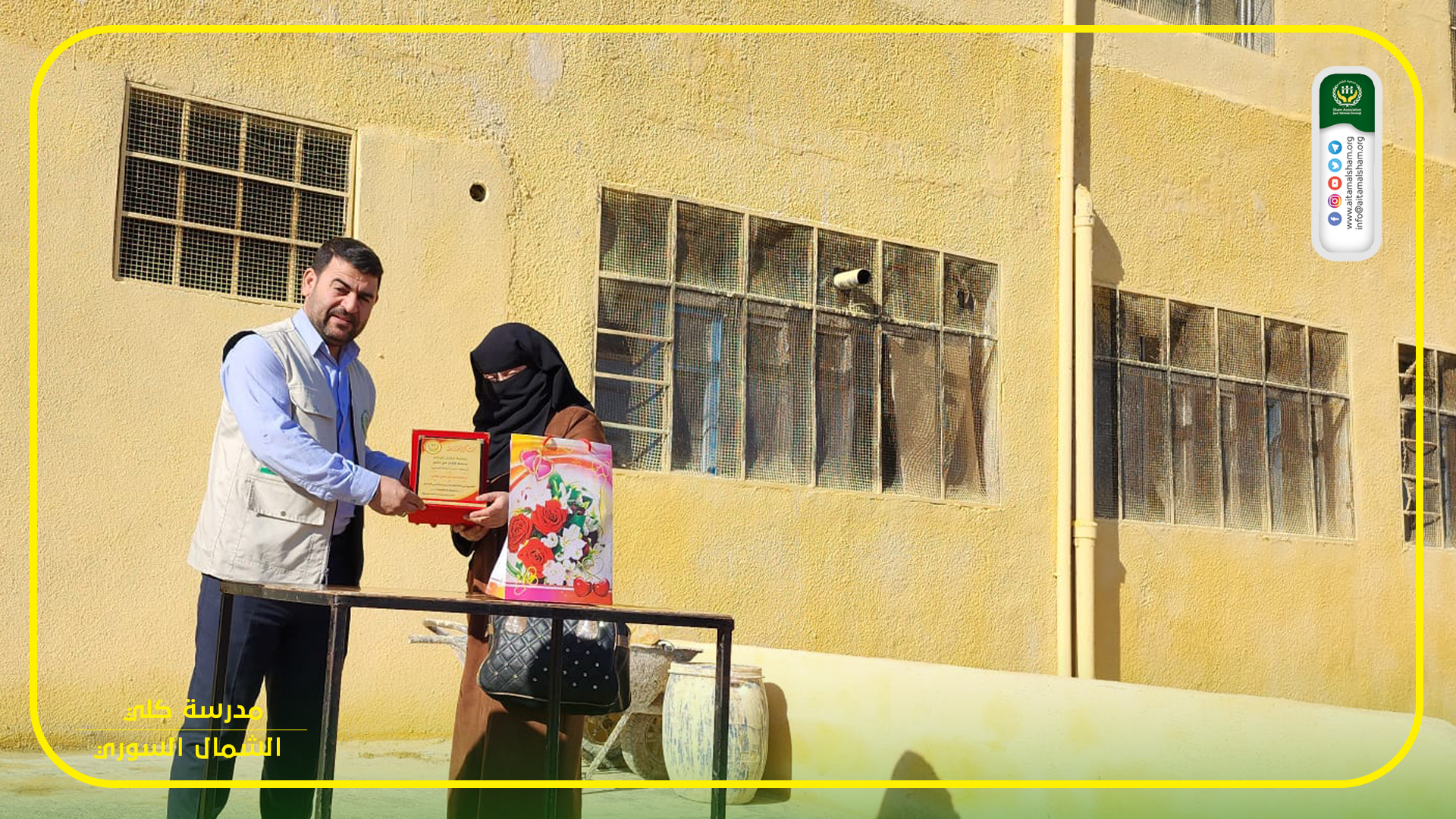 إلى المعلمة القديرة صالحة طالب التي أعطت وأجزلت بعطائها، وروت طلابنا علمًا وثقافةً، وضحّت بوقتها وجهدها وتفانت وأبدعت ونالت ثمار تعبها، إليكِ معلمتنا الغالية كل الشكر والتقدير على جهودكِ القيّمة، وإليك نقدم درع التكريم مع هدية بسيطة تعبر عن تقديرنا واحترامنا لك🌺🌺