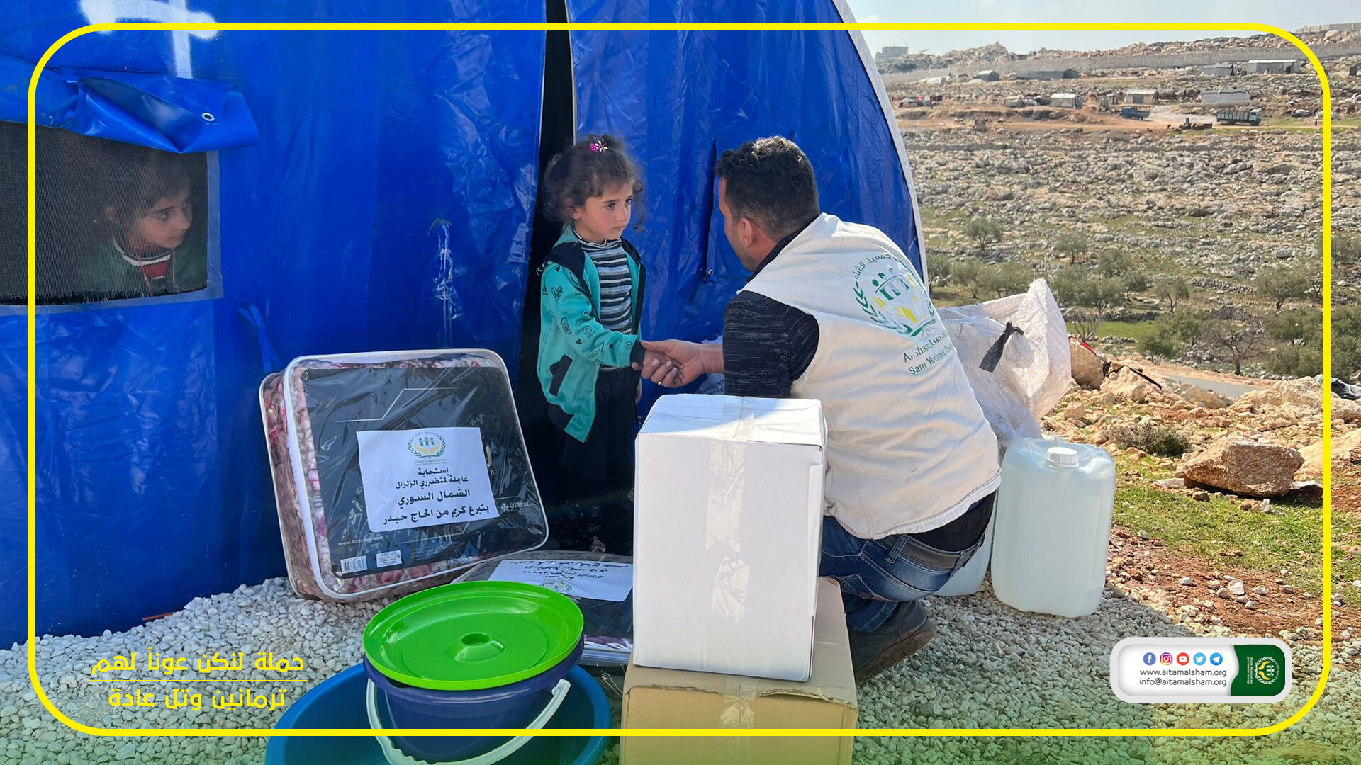 قمنا بتوزيع سلة معلبات وسلة منظفات وحرامات لمتضرري الزلزال في ترمانين وتلعادة