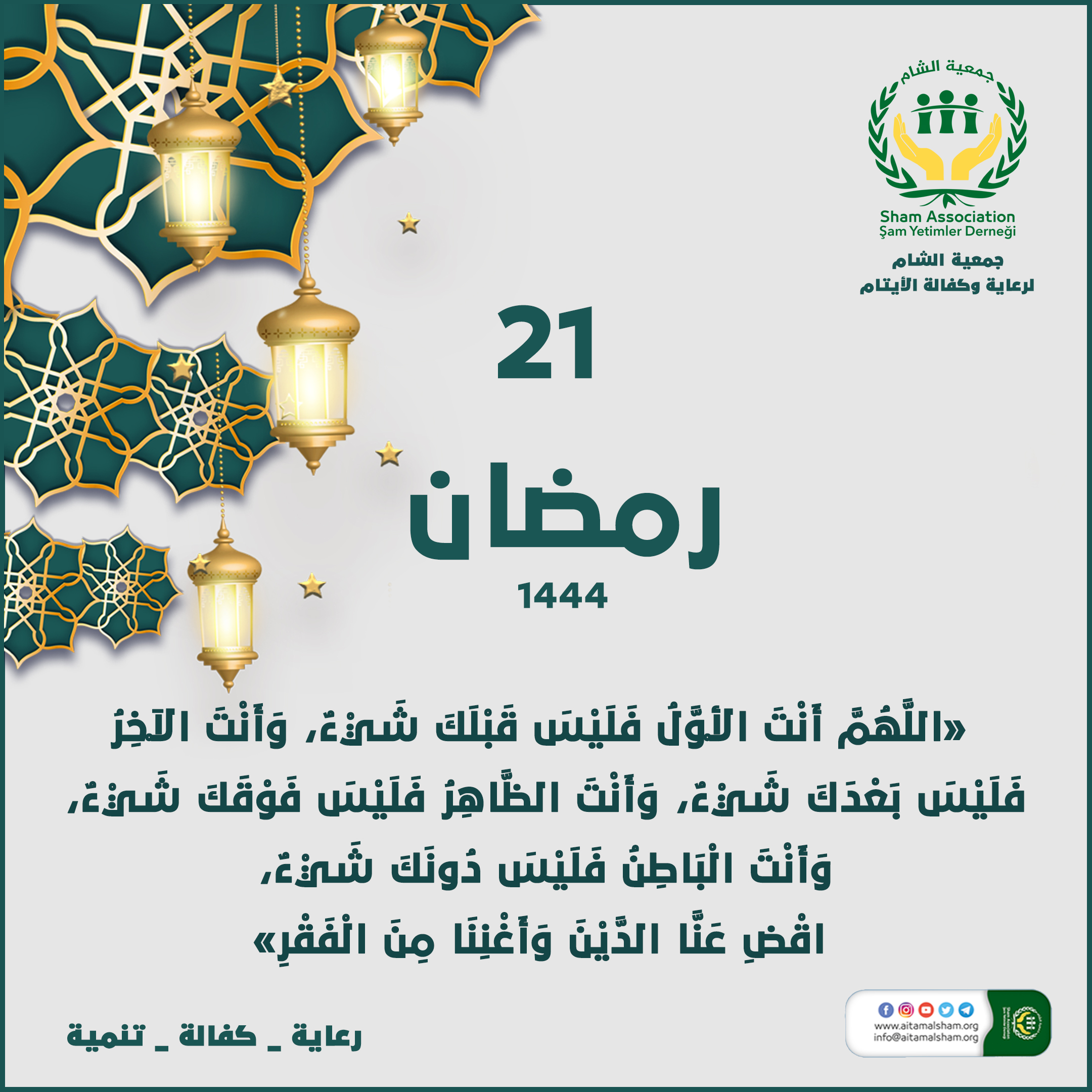 جمعية الشام لرعاية وكفالة الأيتام تتمنى للمسلمين عامة ولعوائل الأيتام خاصة أن يتقبل الله طاعتهم ويغفر لهم ويبارك لهم فيما رزقهم.![]()