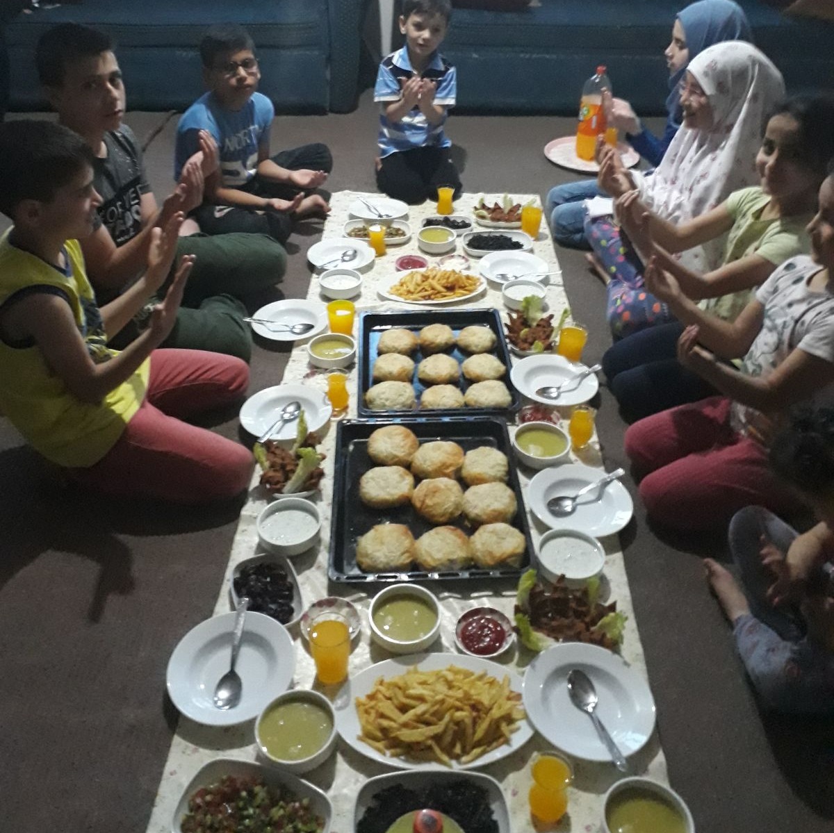 افطار الطابق الاخير من دار النوري ببورصة التابعة للجمعية حيث ان عوائل كل طابق يطبخون سوية