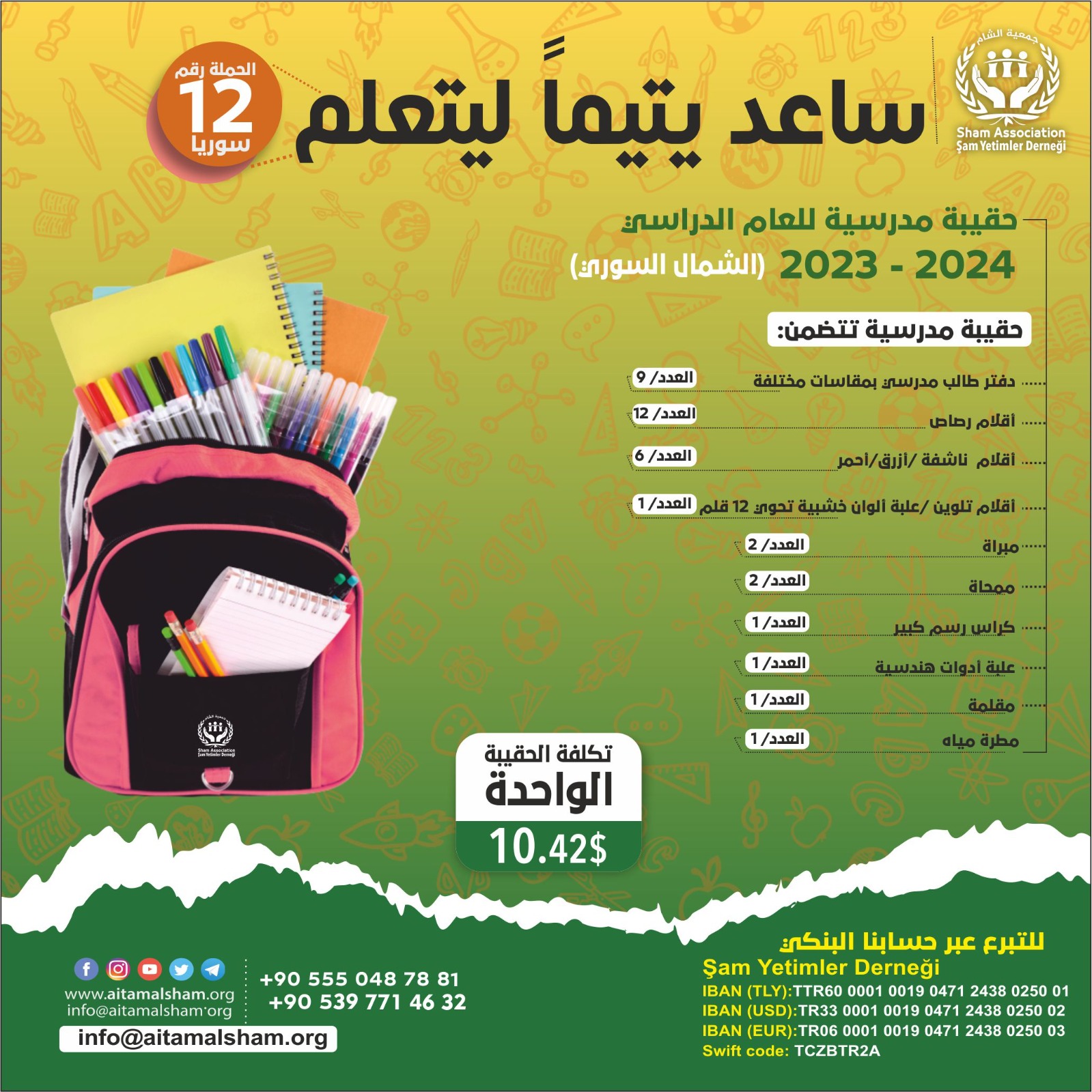 في عامها الثاني عشر على التوالي ماتزال جمعية الشام لرعاية وكفالة الأيتام تطلق في كل عام حملة ((ساعد يتيماً ليتعلم))