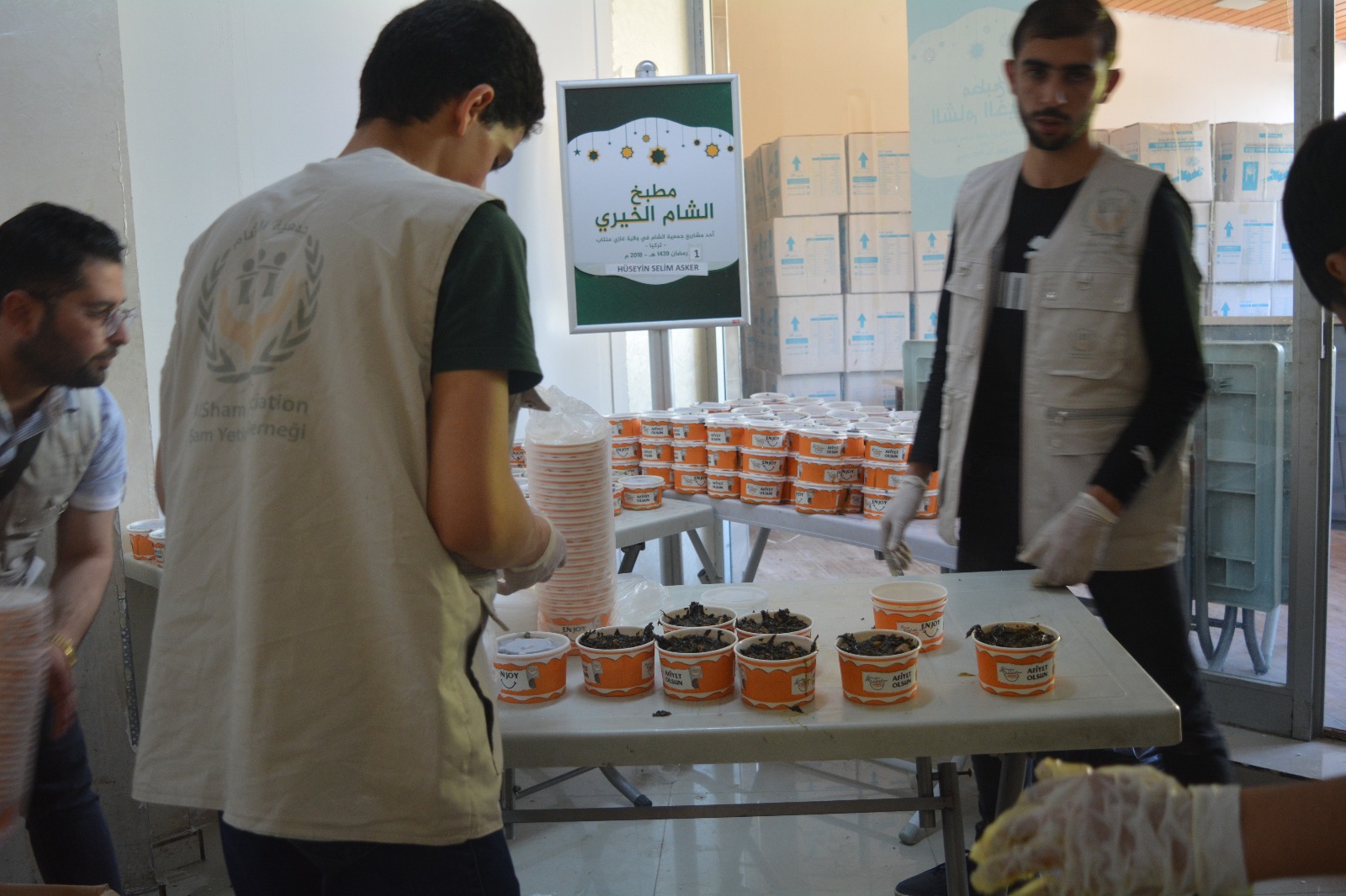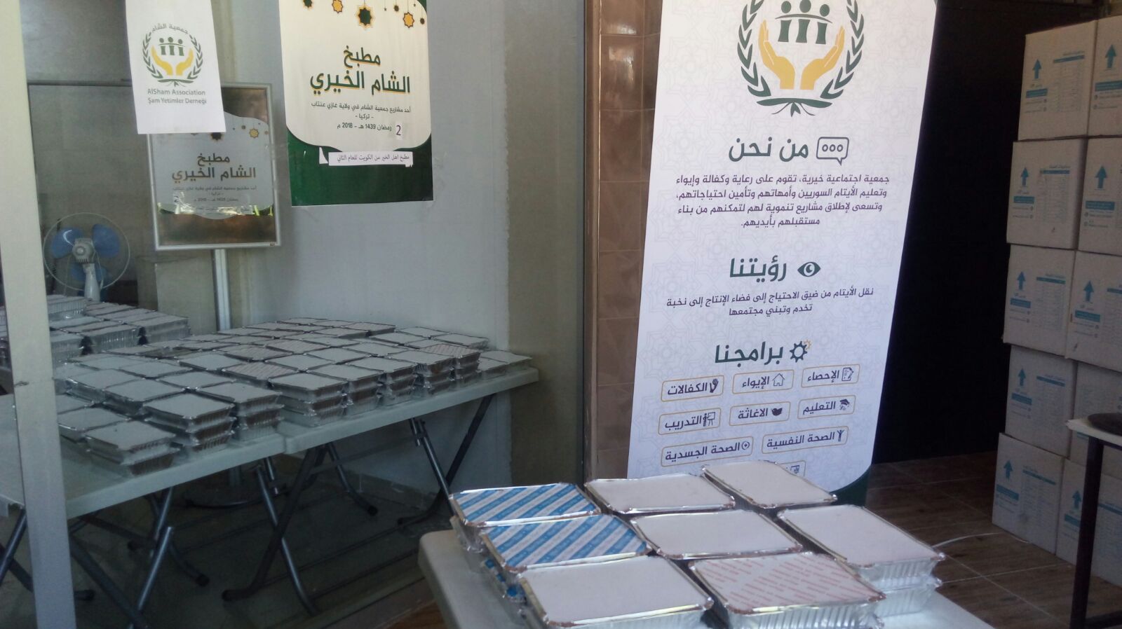 بحمد الله وتوفيقه بدأ مطبخ الشام الخيري في غازي عنتاب بتركيا بتقديم وجبات افطار لعوائل الايتام الأكثر احتياجا حيث يتم يوميا تقديم من 1000 الى 1200 وجبة