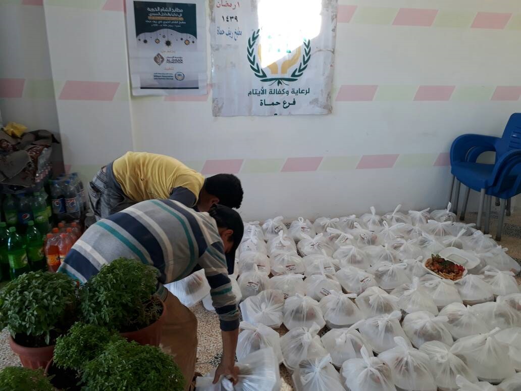 بحمد الله وتوفيقه بدأ مطبخ الشام الخيري بريف حماه بتقدم وجبات لعوائل الايتام بدعم من مؤسسة الاحسان جزاهم الله خيرا
