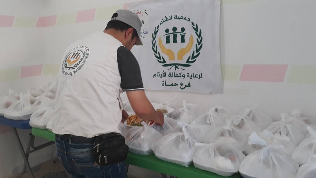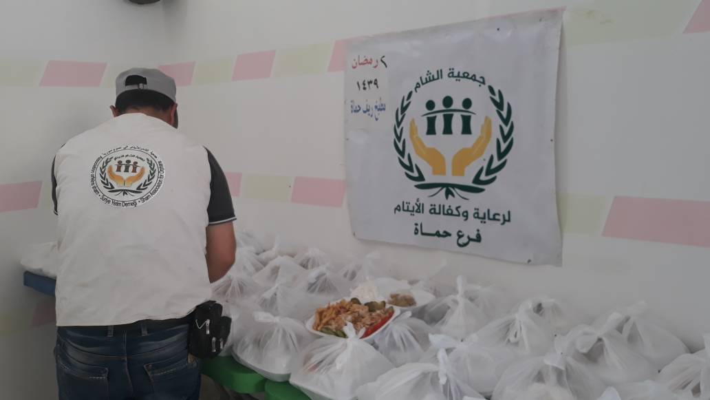 مطبخ الشام الخيري بريف حماه يقديم وجبات افطار لعوائل الايتام في الاتارب لليوم الثاني من رمضان 1439 بدعم من موسسة الاحسان الاسترالية يتاريخ 2/9/1439