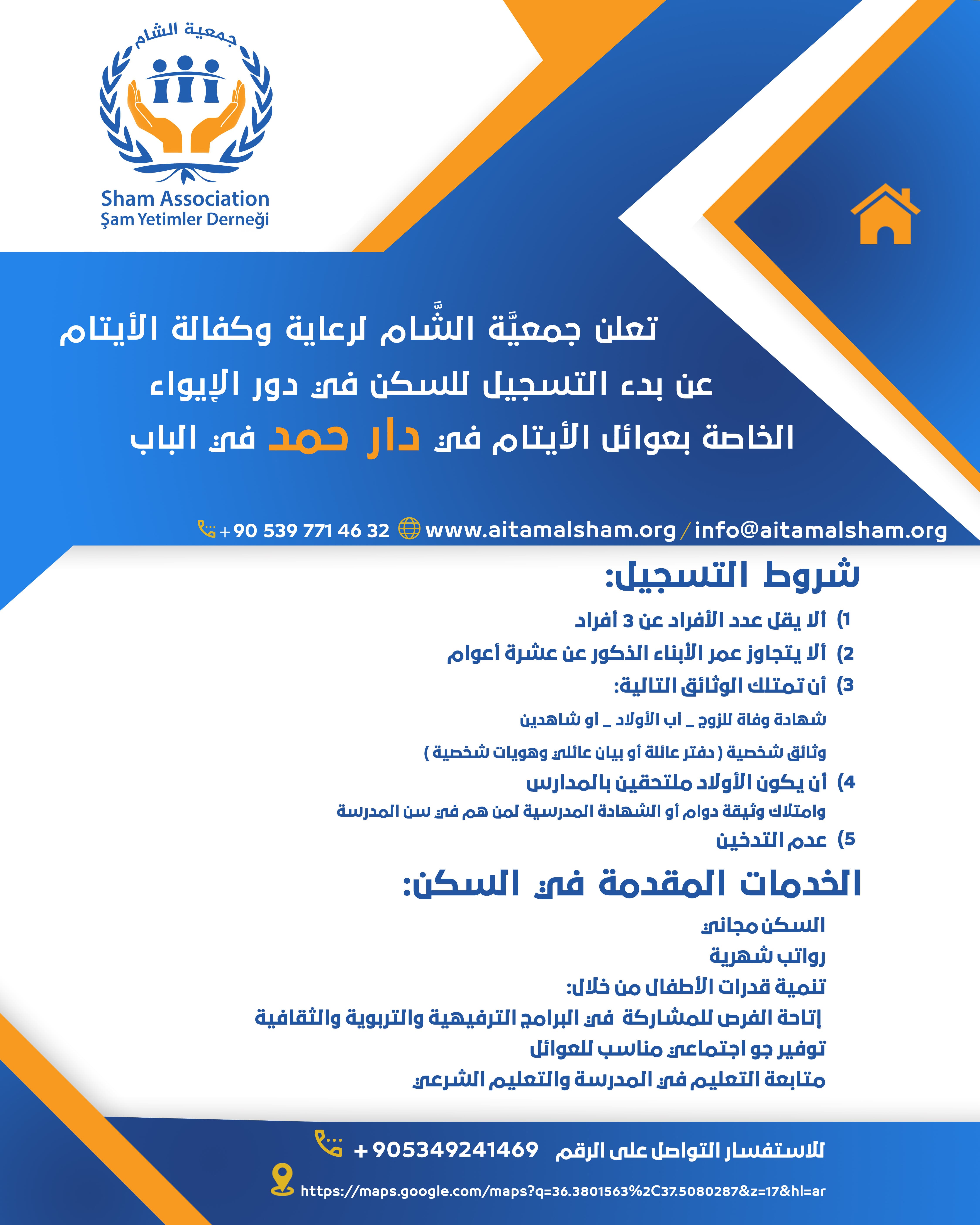 إعلان عن بدء التسجيل في دار حمد للإيواء في الباب