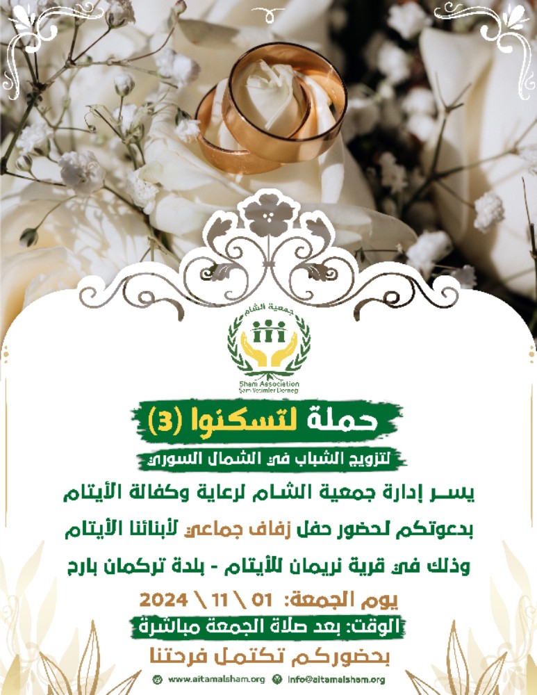 حملة لتسكنوا 3 _ لتزويج الشباب الأيتام في الشمال السوري
