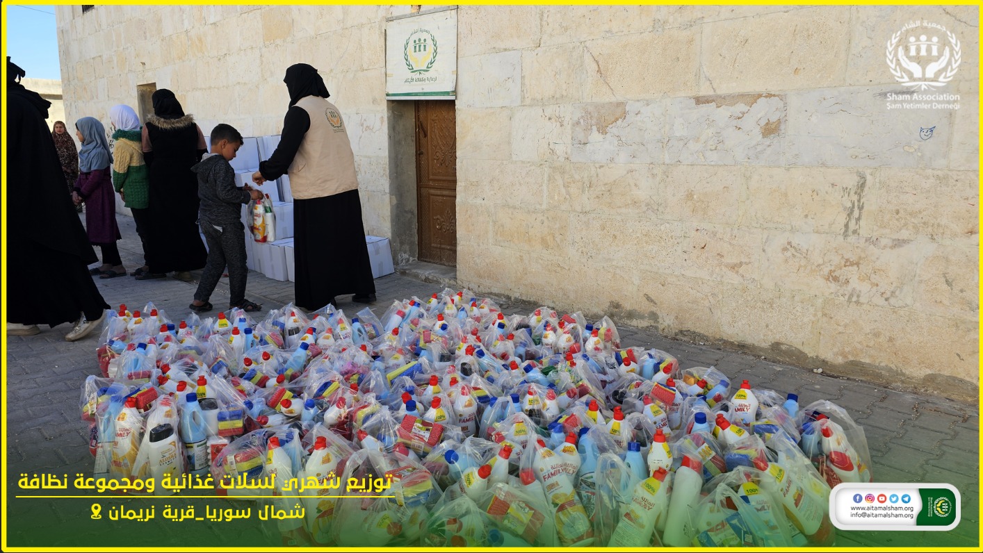 من أجل مساندتهم وتحمل بعض الأعباء عنهم قامت جمعية الشام لكفالة ورعاية الأيتام بتوزيع #سلات_غذائية ومجموعة #نظافة على عوائل الأيتام في قرية نريمان رحمها الله حيث بلغ عدد المستفيدين 105 عوائل