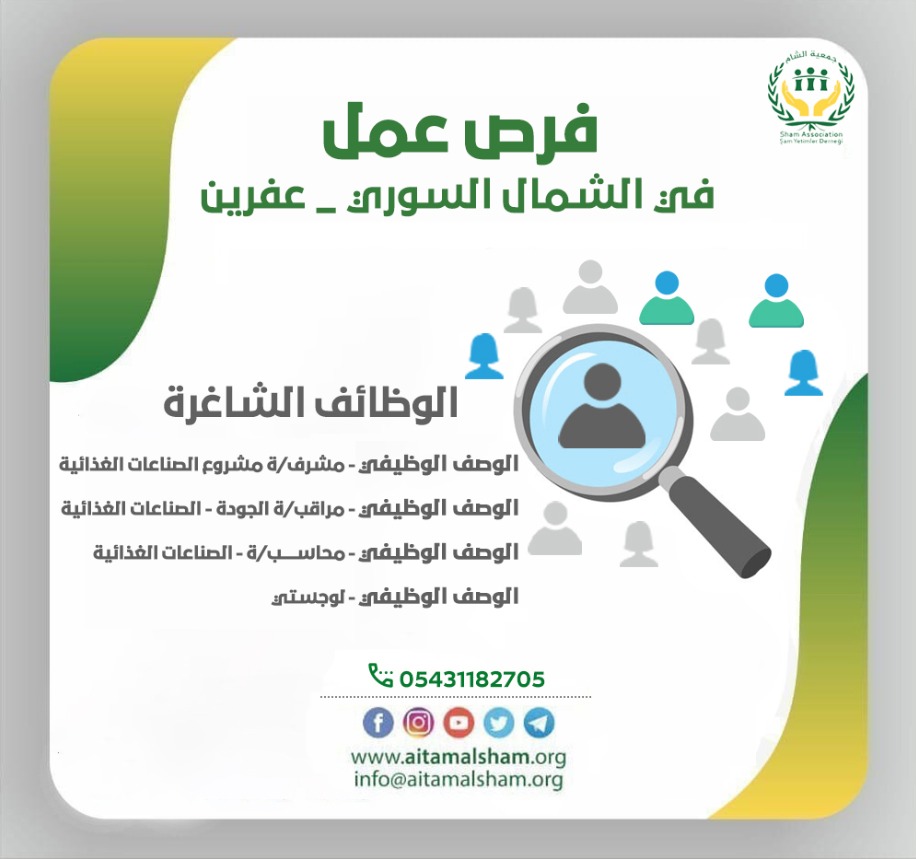 #فرص_عمل في #مشروع_الصناعات_الغذائية -#عفرين -