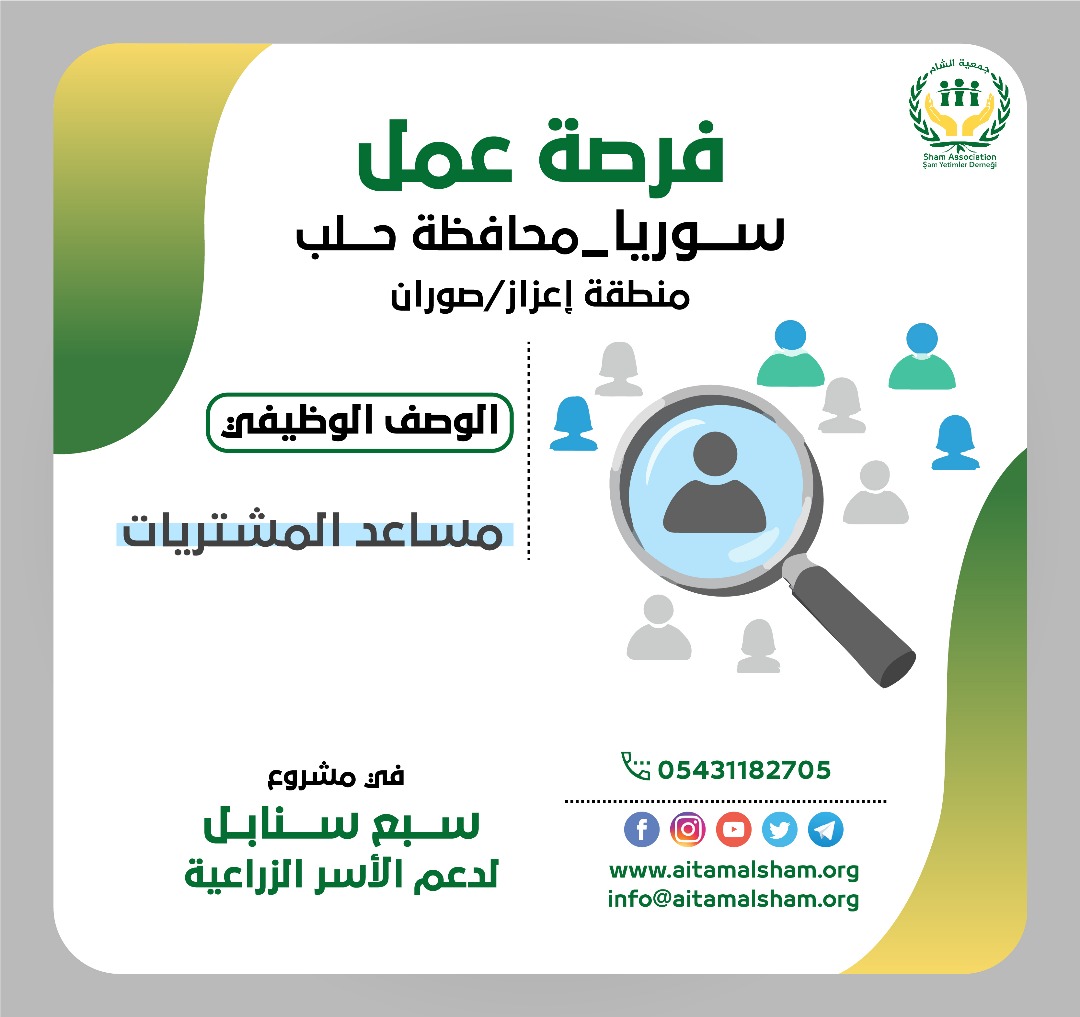 #إعلان رقم : 6 مساعد لوجستي ومشتريات - مشروع سبع سنابل- #حلب