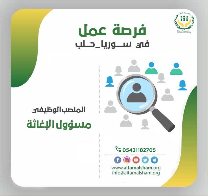 #اعلان_وظيفي - #مسؤول_الاغاثة - #حلب - تعلن