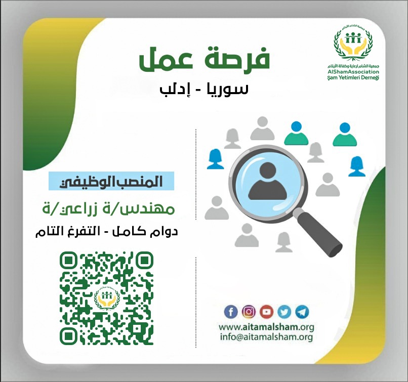 إعلان فرصة عمل لدى جمعية الشام للأيتام / مهندس/ة زراعي