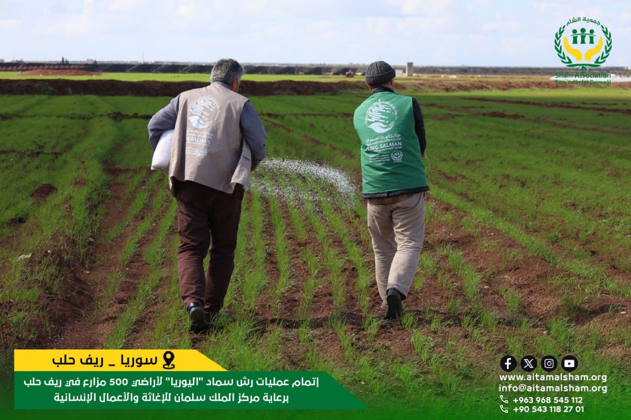 مركز الملك سلمان للإغاثة يختتم نشاط رش سماد اليوريا لأراضي 500 مزارع في ريف حلب