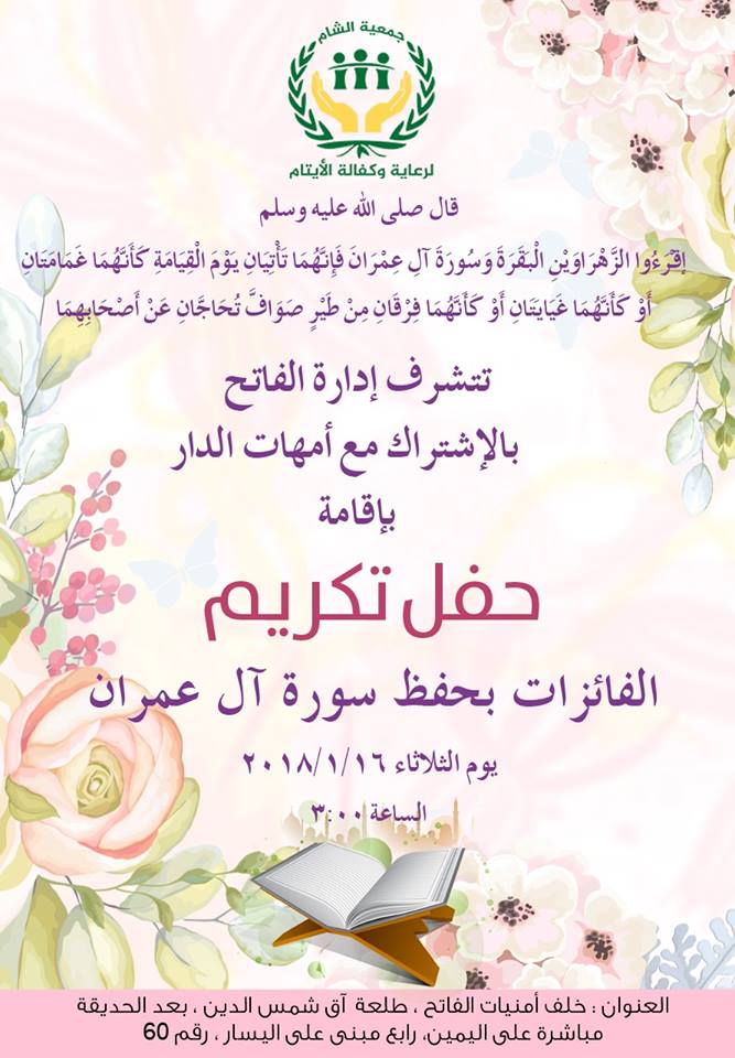 تكريم الفائزات بمسابقة آل عمران من امهات دار الفاتح