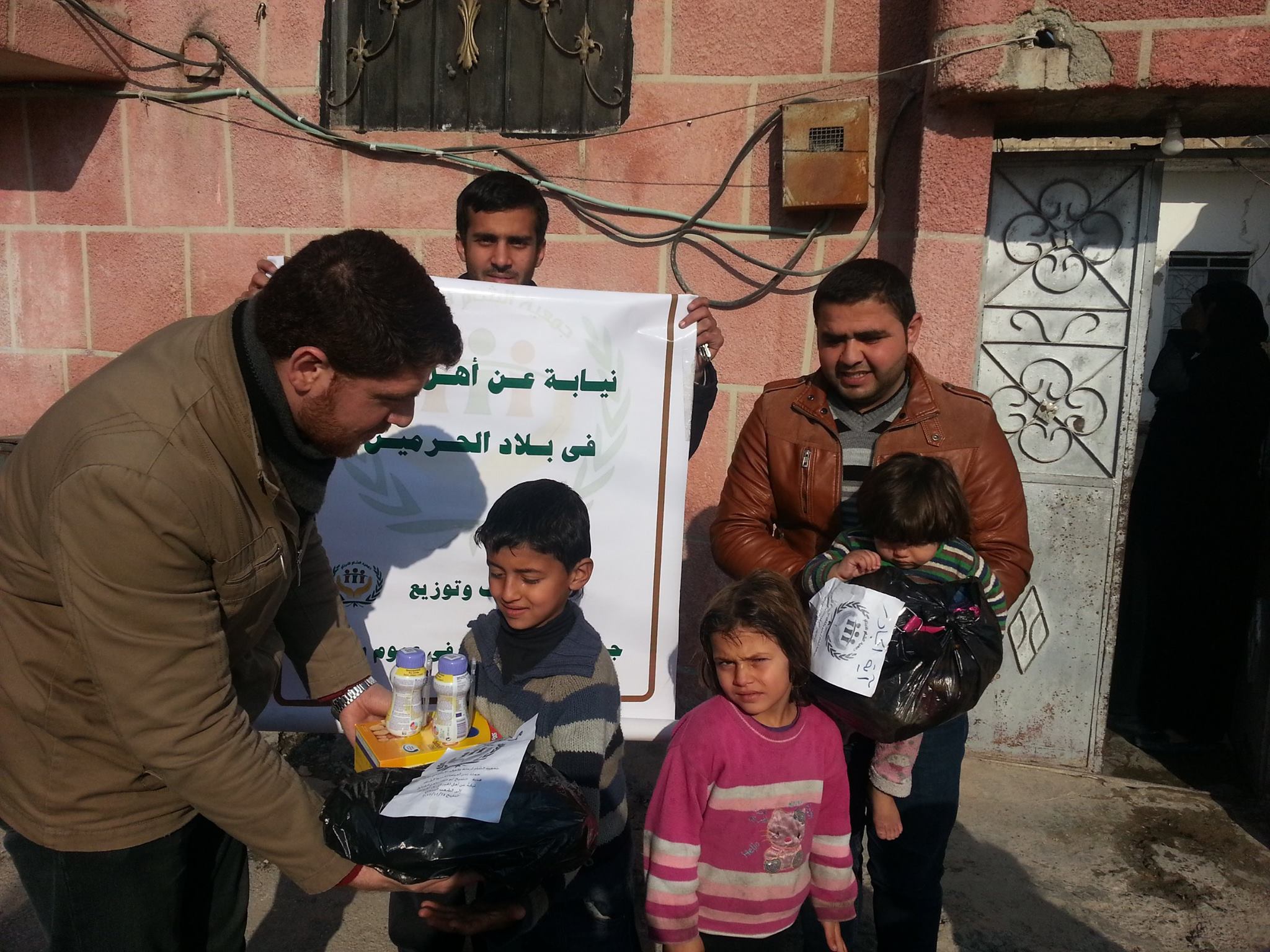 قام فريق فرع جرابلس لجمعية أيتام شام لكفالة ورعاية الأيتام بعموم سورية بتوزيع مواد غذائية وكمية من الألبسة على عوائل الايتام والفقراء في جرابلس والمخيمات الموجودة في منطقة جرابلس ضمن حملة من احياها