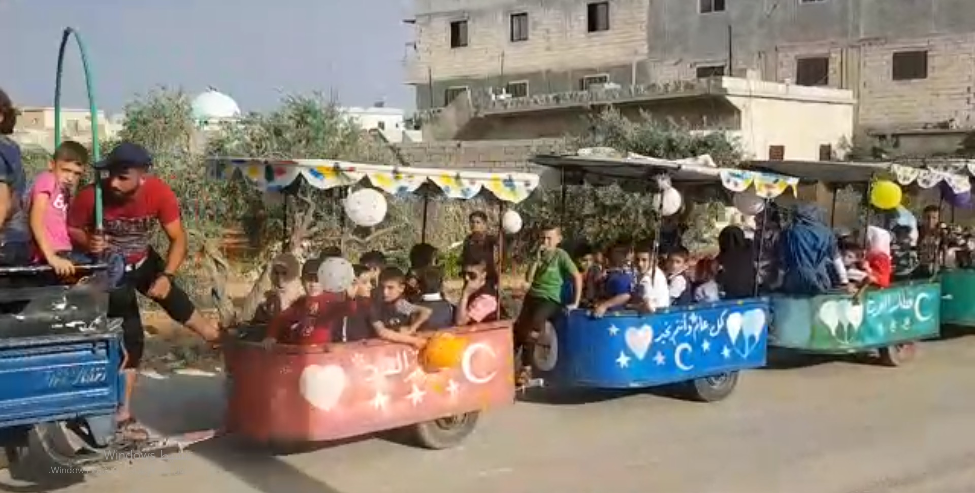 حفل بسمة يتيم الذي أقامته جمعية عبيدة مع جمعية الشام في فرع الاتارب بدعم من لي بوي لزرع البسمة على شفاه الايتام
