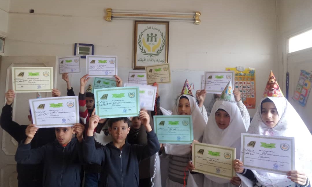 بحمد الله وتوفيقه تم تكريم 17 يتيم ويتمية من المتفوقين في حفظ أجزاء من القرآن الحكيم/ جزء عم، جزء تبارك، سورة الكهف وسورة ياسين في دار الاميرات ودار السفراء التابعين لجمعية الشام للأيتام بالداخل السوري ضمن حفلة لادخال الفرحة لقلوبهم وتشجيعهم وتشجيع غيرهم