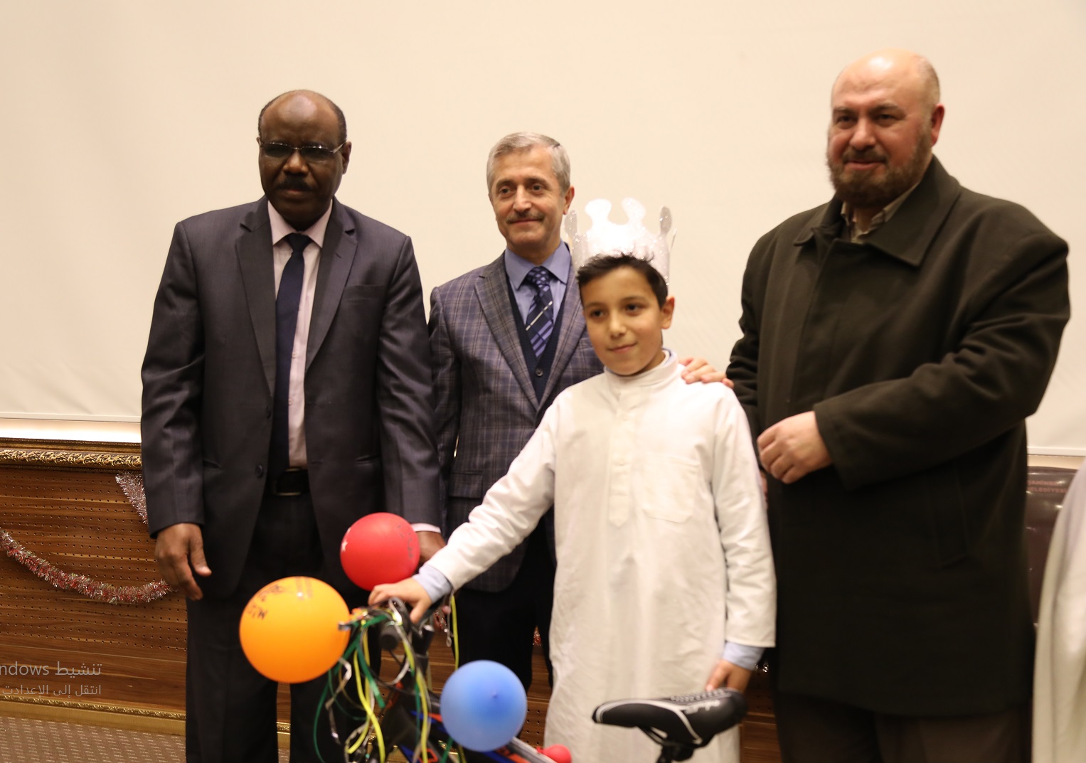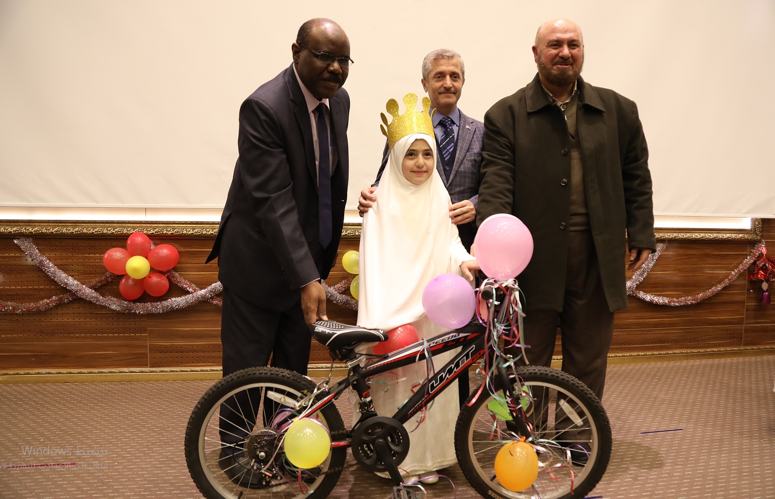 وقد بدا الحفل بقراءة للقرآن الكريم وكلمة ترحيبية من المدير العام للجمعية وكلمة لمدير مكتب قطير الخيرية وكلمة لرئيس بلدية شاهين بيه وتم عرض فقرات مسرحية وانشادية من قبل اطفالنا وتم تكريم جميع الفائزين بدرجات هوائية وهدايا ومبالغ مالية تتراوح بين 300 و50 ليرة تركية حسب درجة المتسابق