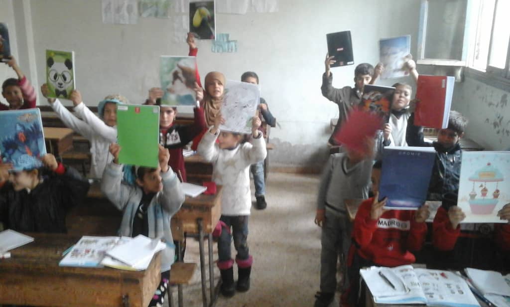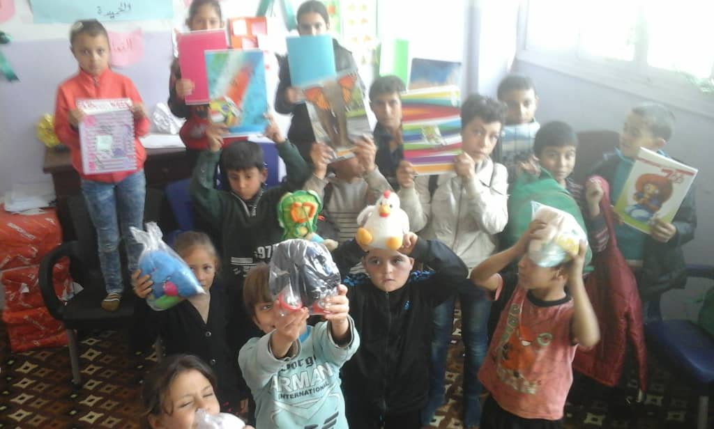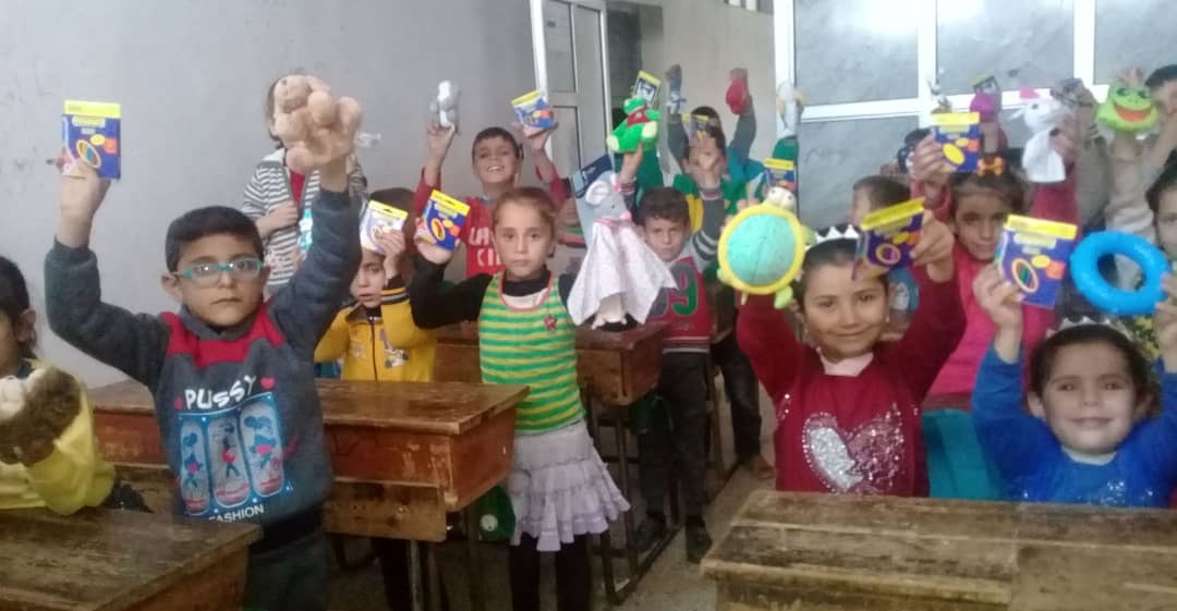 توزيع دفاتر رسم وتلاوين وهدايا على أبنائنا بمدرسة الشام