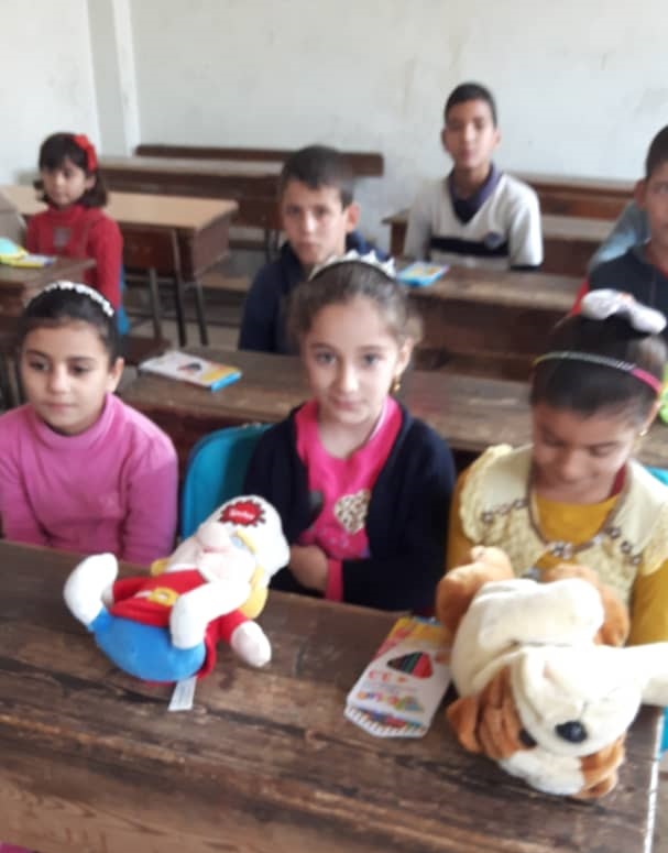 توزيع دفاتر رسم وتلاوين وهدايا على ابنائنا بمدرسة الشام ببلدة كللي