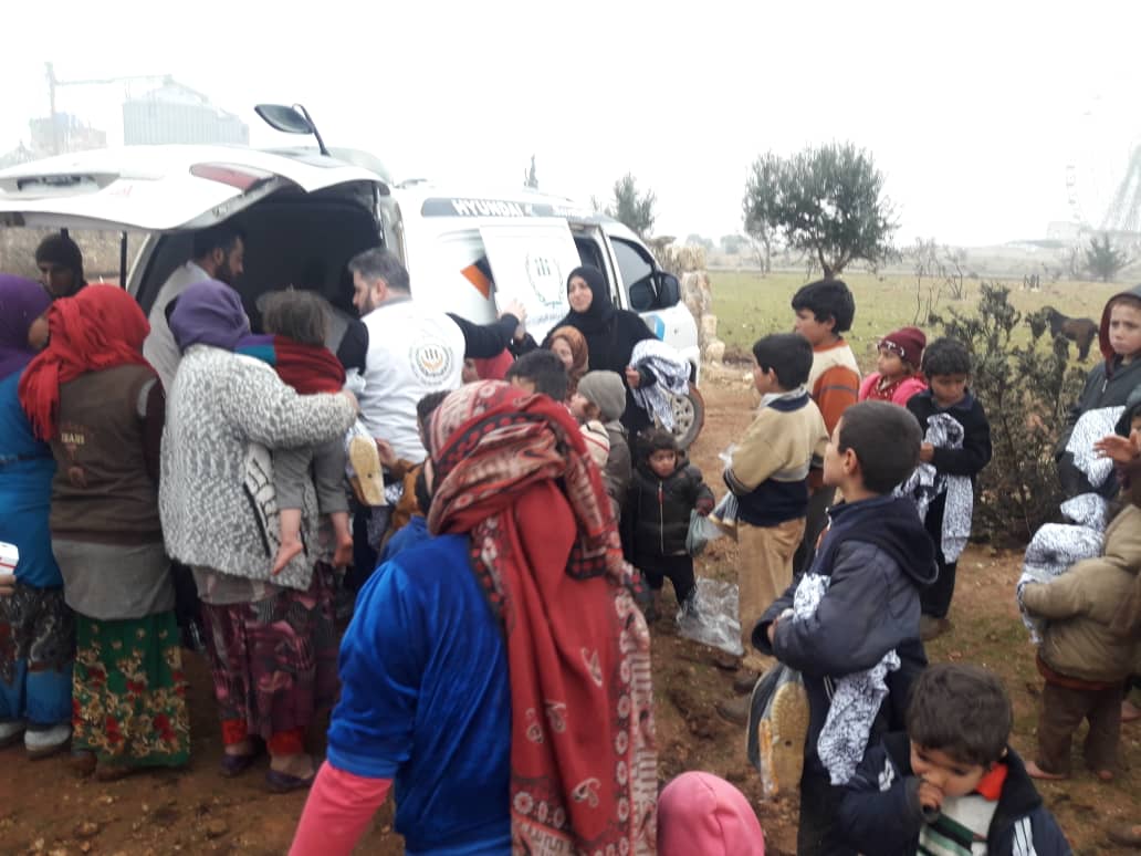 توزيع ملابس وجزمات شتوية وحصر على العوائل المنكوبة والمتضررة من السيول والامطار من الأيتام وغيرهم في اريحها وماحولها ضمن حملة حملة لنقف معهم ونخفف من معاناتهم