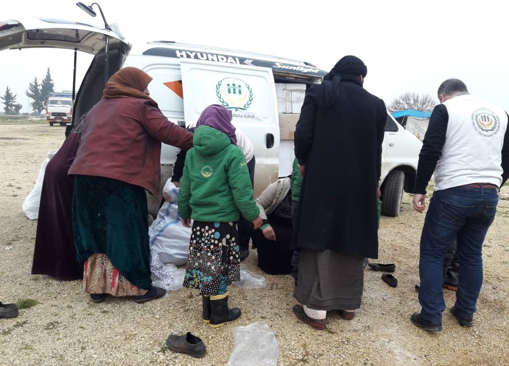 توزيع ملابس وجزمات شتوية وحصر على العوائل المنكوبة