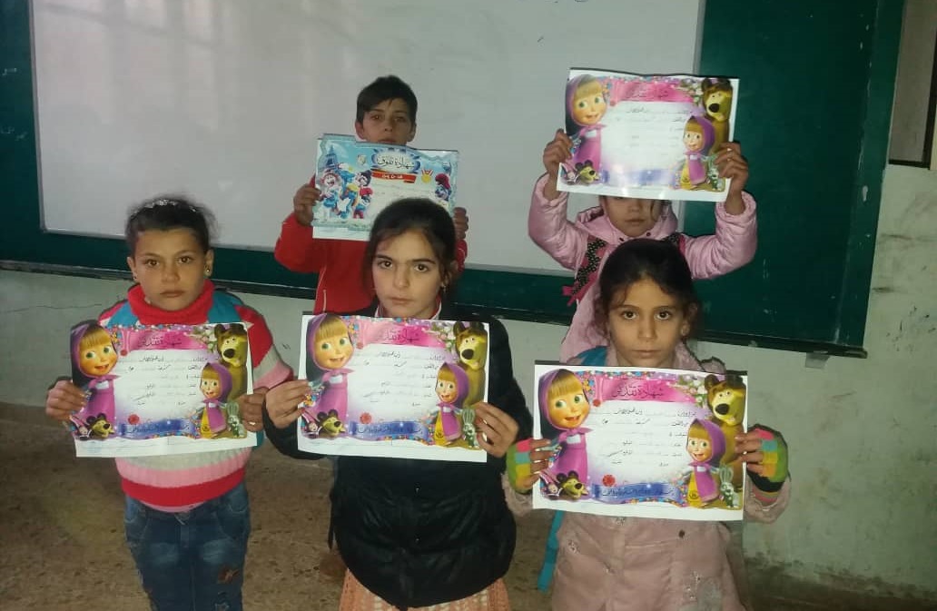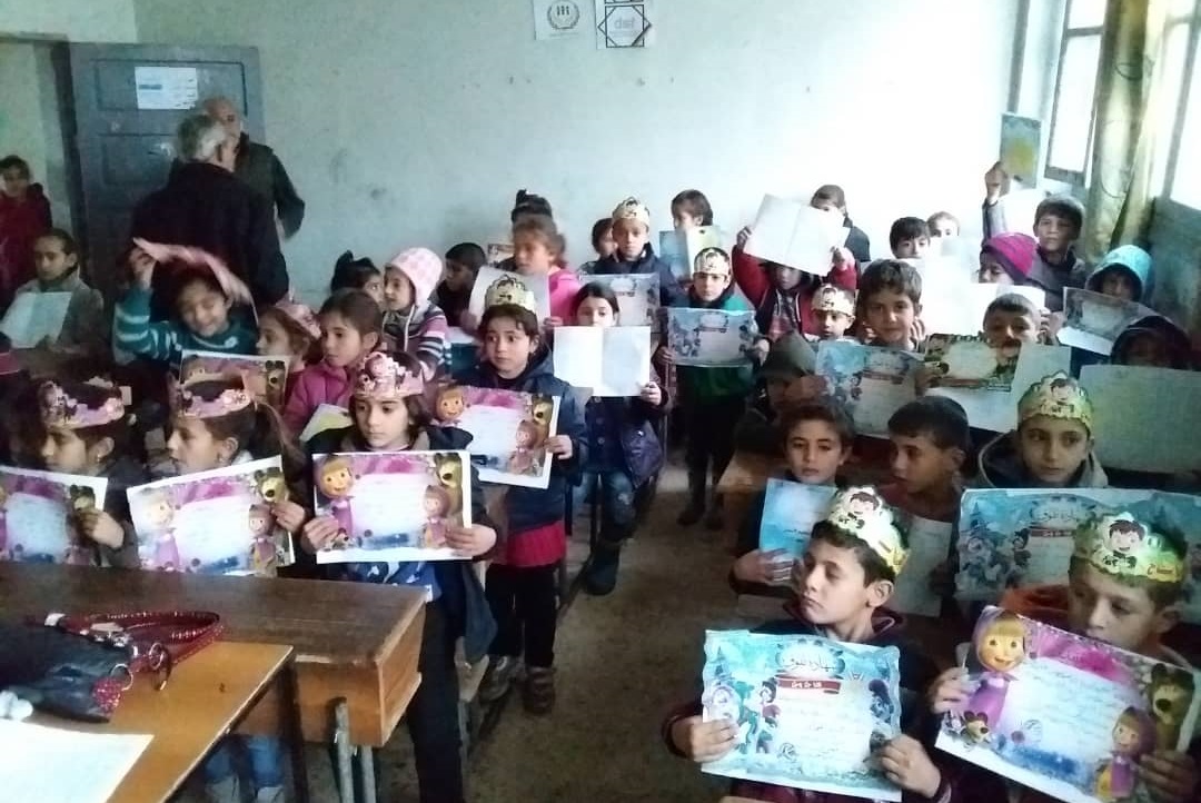 توزيع جلاءات الفصل الأول على أبنائنا بمدرسة الشام ببلدة كللي