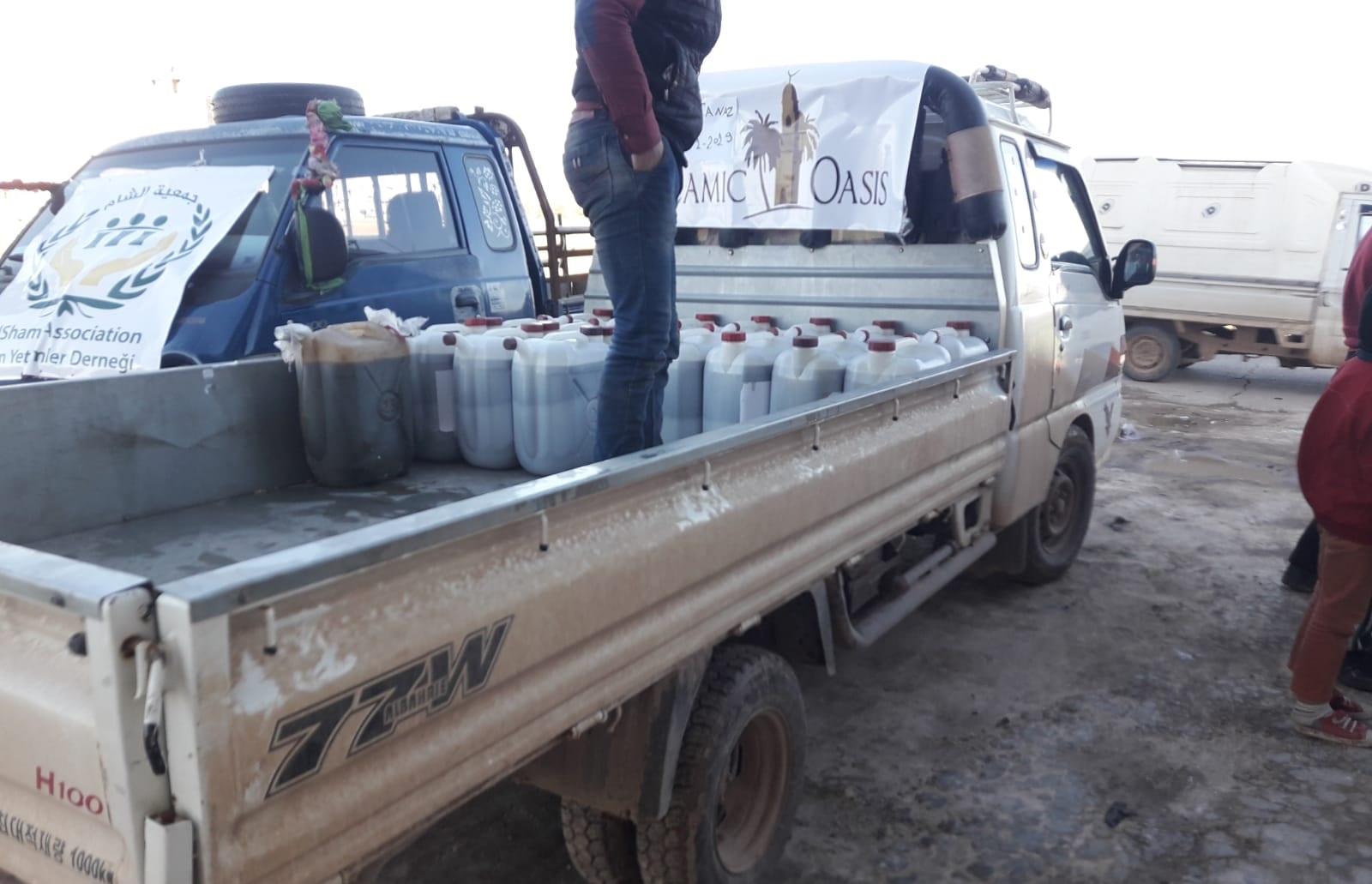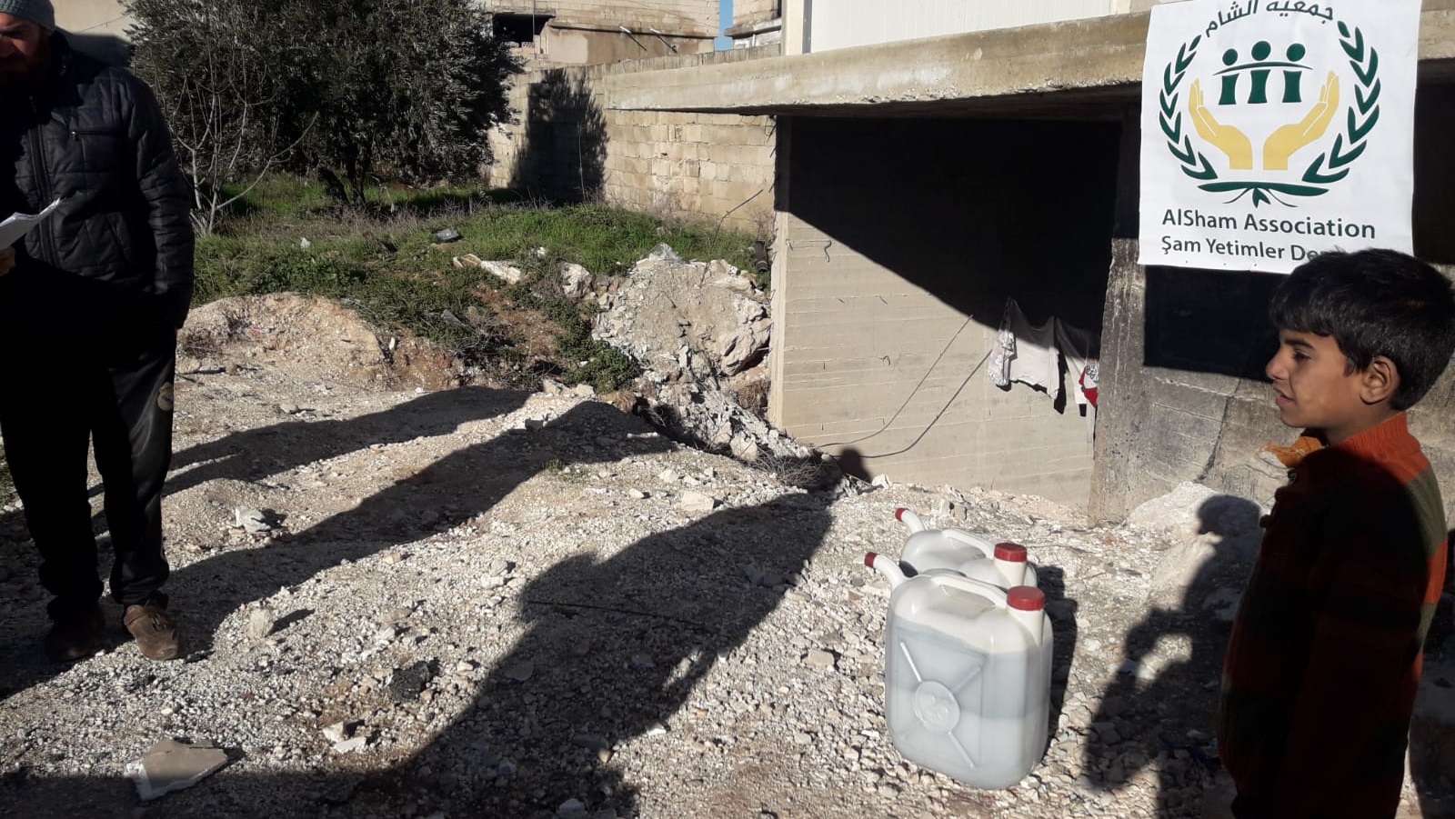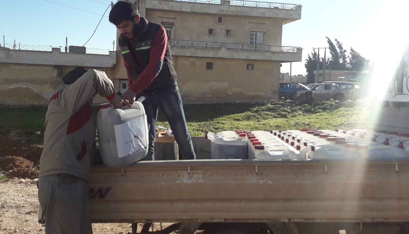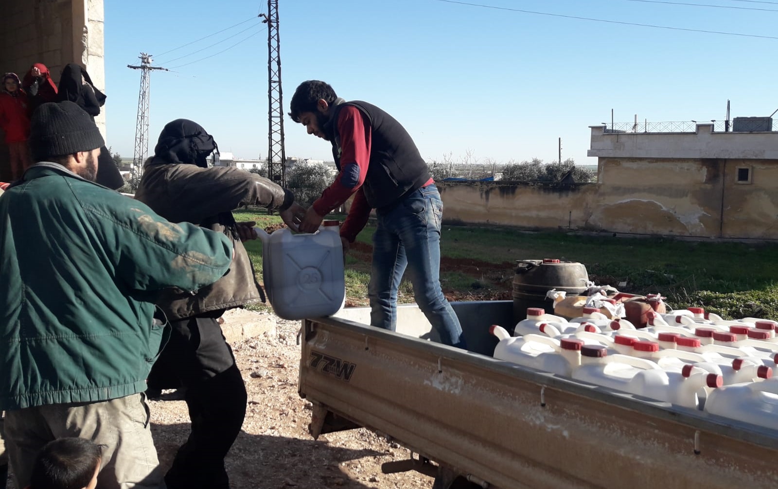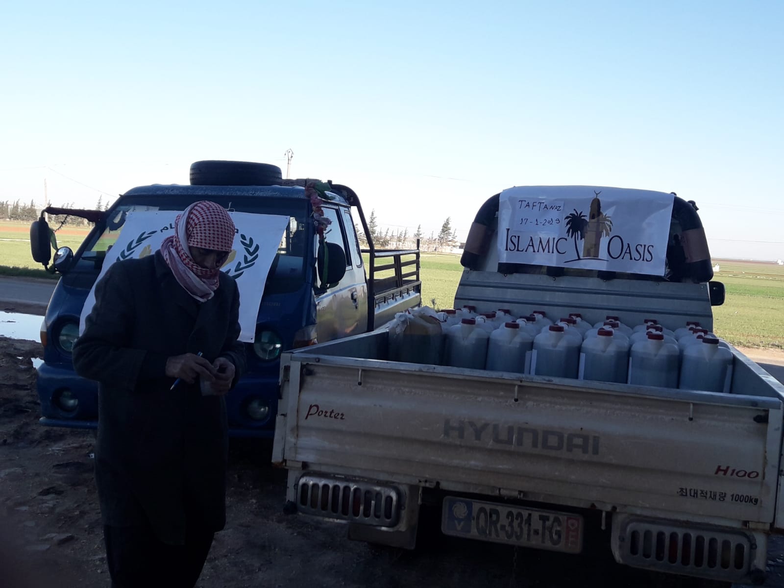 توزيع 1250 لتر مازوت من النوع الممتاز على 50 عائلة من العوائل المنكوبة والمتضررة من السيول والامطار من الأيتام كل عائلة 25 ليتر في تفتناز ضمن حملة حملة لنقف معهم ونخفف من معاناتهم