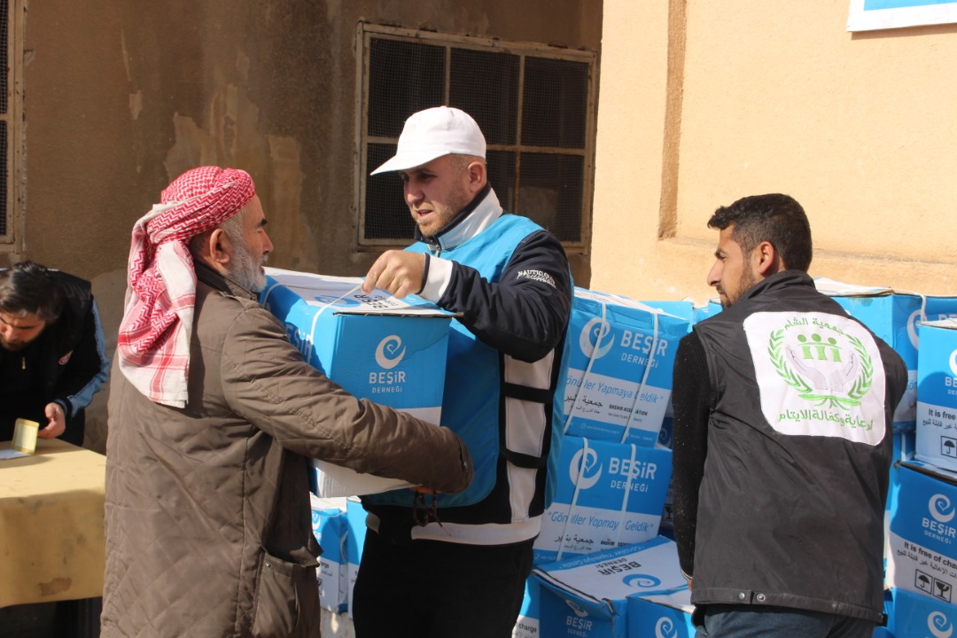 توزيع 100 سلة غذائية على عوائل الايتام بالاتارب مقدمة من جمعية البشير التركية جزاعم الله خيرا ضمن حملة لنقف معهم ونخفف من معاناتهم